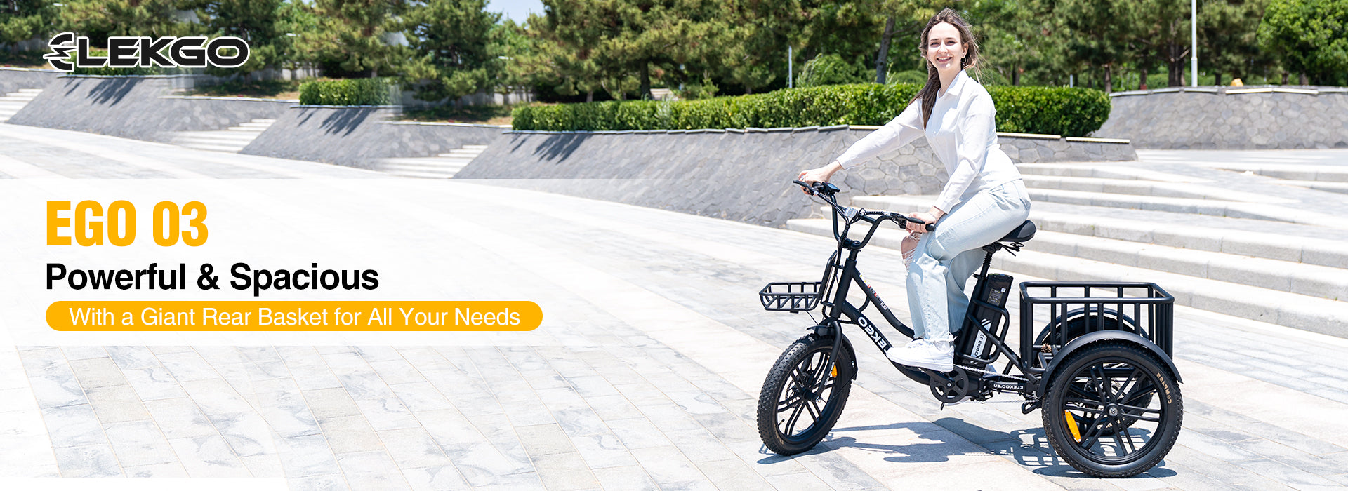The EGO03 features a step-through frame design, making it easy to mount and dismount the tricycle. The frame is made from high-carbon steel, ensuring durability and strength.